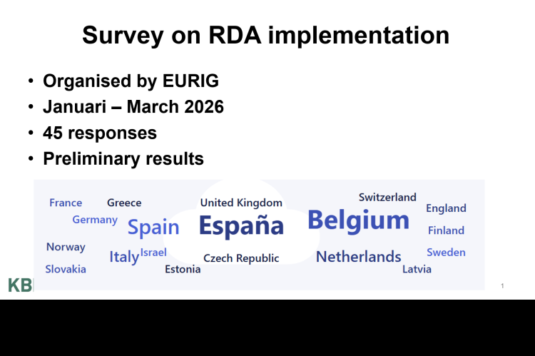 At yesterday's Joint Meeting of the RDA Board and RDA Steering Committee, Hannes Lowagie, the National Institution Representative for Europe to the RDA Board, provided an overview of his initial analysis of EURIG's survey. He will share more in the EURIG Meeting in May, but for now you can view the slides here.